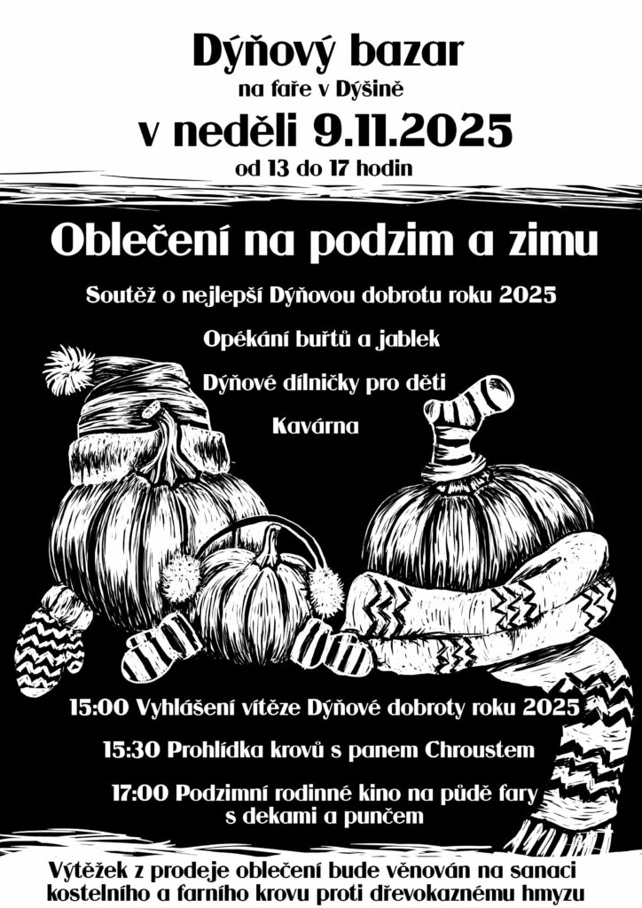 Srdečně vás zveme na podzimní bazar tentokrát pojmenovaným jako „Dýňový bazar“. Můžete se těšit na bohatý program a také si vybrat nějaké oblečení na podzim a zimu.